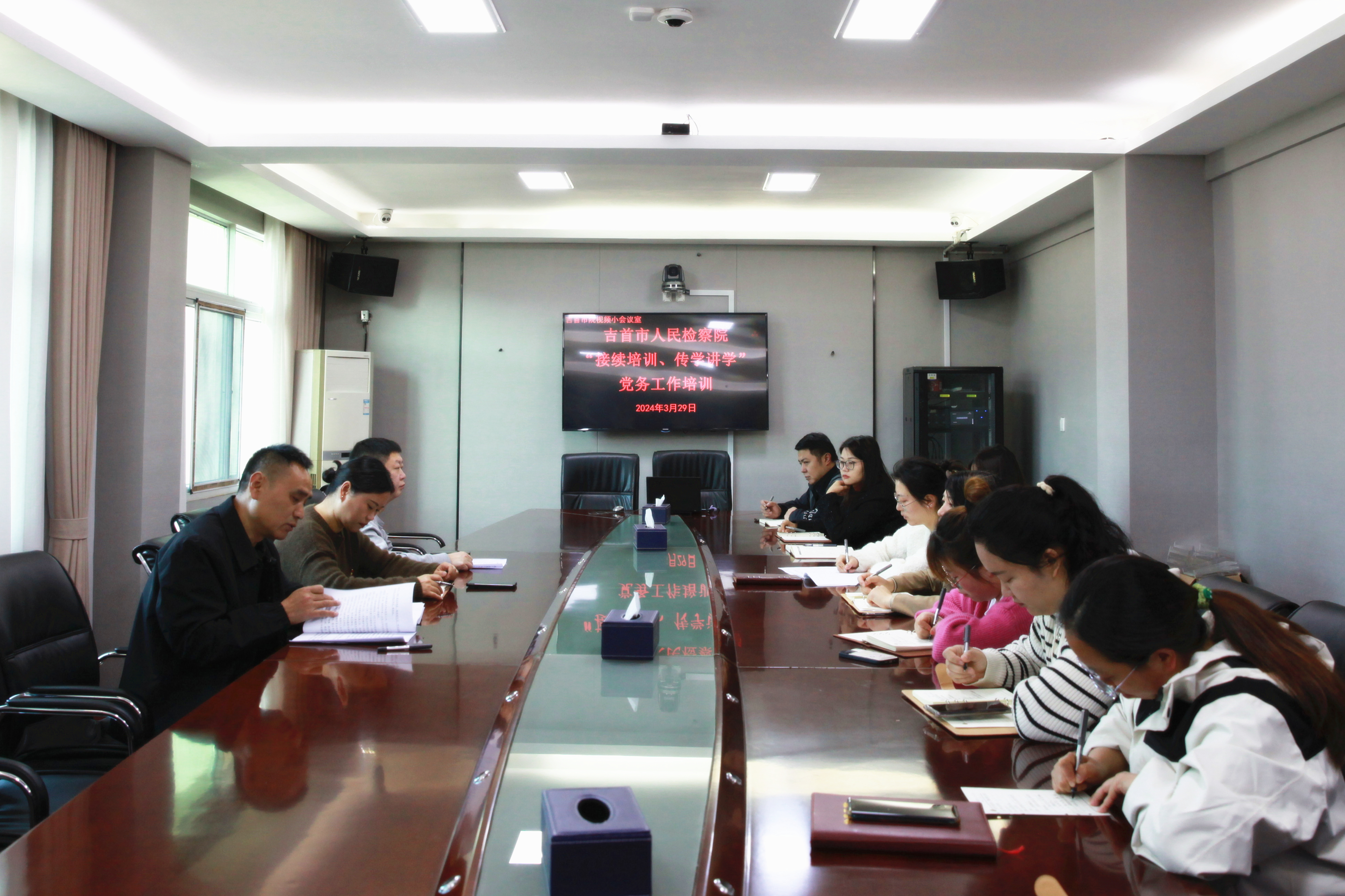 为进一步加强机关党建工作,抓实党务教育培训,提升党务干部素能。3月29日,吉首市检察院开展“接续培训、传学讲学”党务工作培训会,会议由院党组成员、政治部主任石学银主持,机关党总支及各支部党务工作者参加培训。