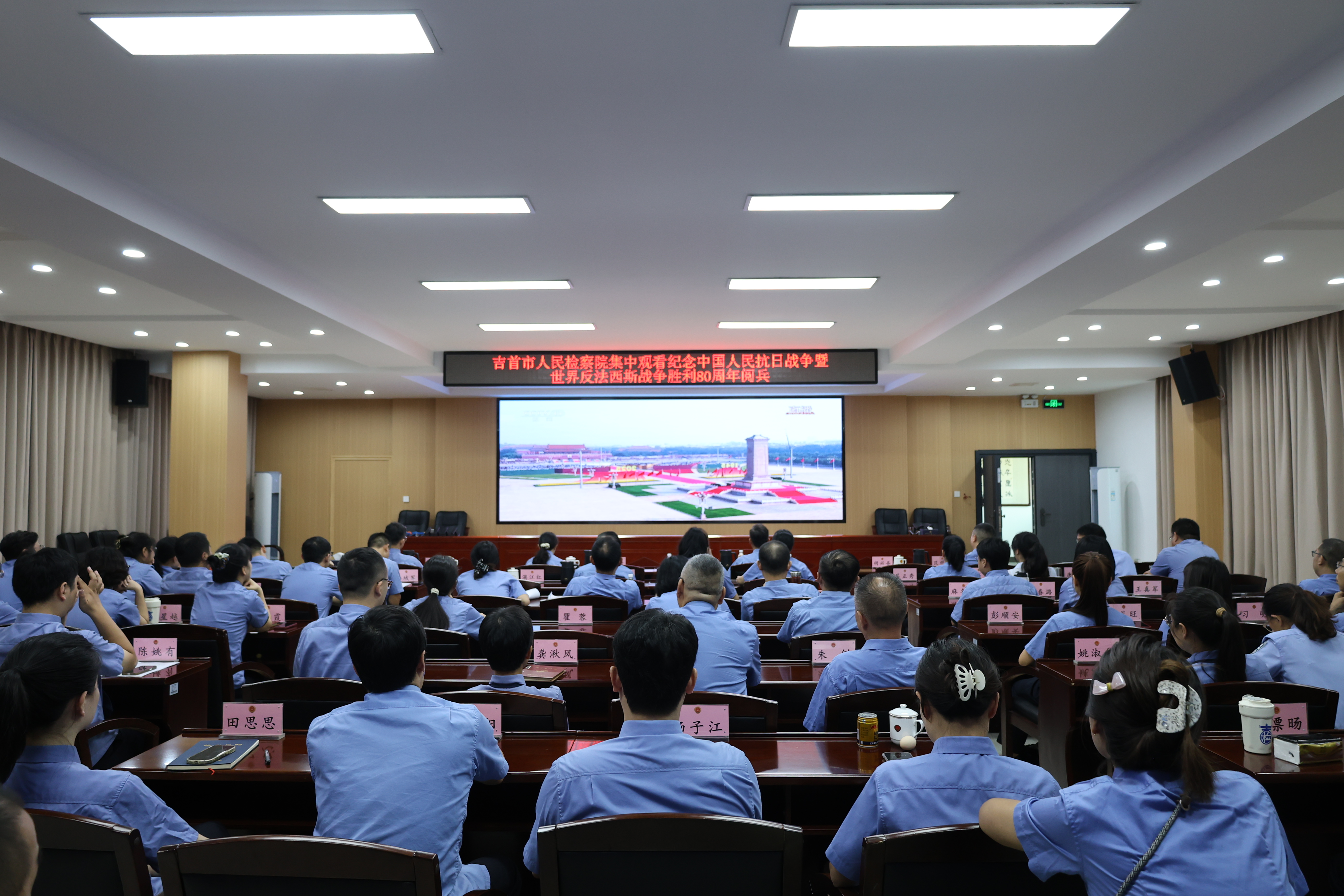 为铭记历史、缅怀先烈,传承和弘扬伟大抗战精神,强化检察人员的爱国情怀与民族责任感,9月3日上午,吉首市检察院积极组织全院检察人员集中观看了纪念中国人民抗日战争暨世界反法西斯战争胜利80周年阅兵式直播。