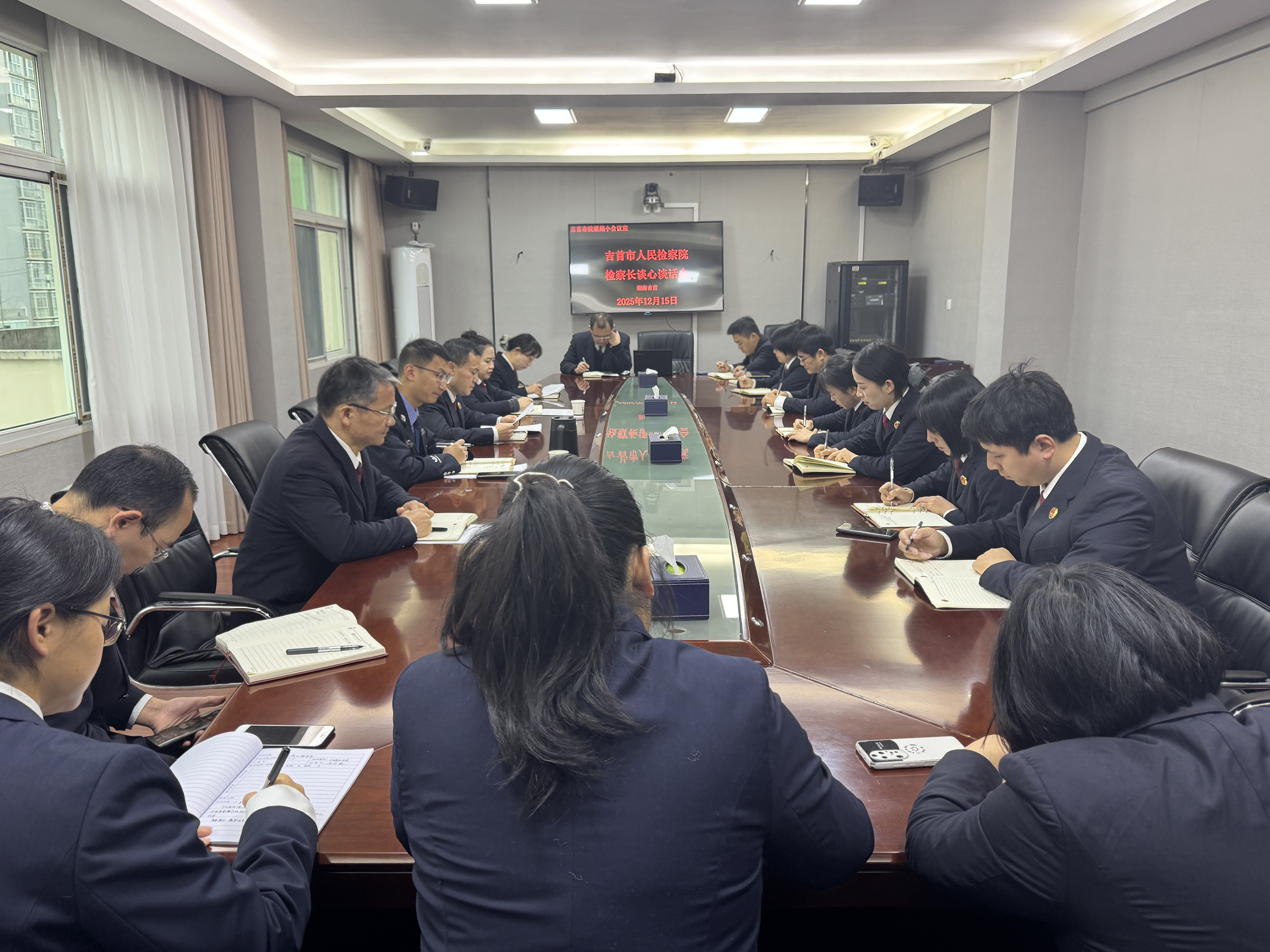 为持续加强检察队伍建设,强化履职担当,12月15日,吉首市检察院党组书记、检察长吴平安主持召开谈心谈话会,与接受人大履职评议监督检察官、新入额检察官及近期晋升职级的干警进行集体谈话。谈话坚持问题导向与目标引领相结合,深入剖析当前队伍建设中存在的不足,明确提出今后工作的努力方向与具体要求。