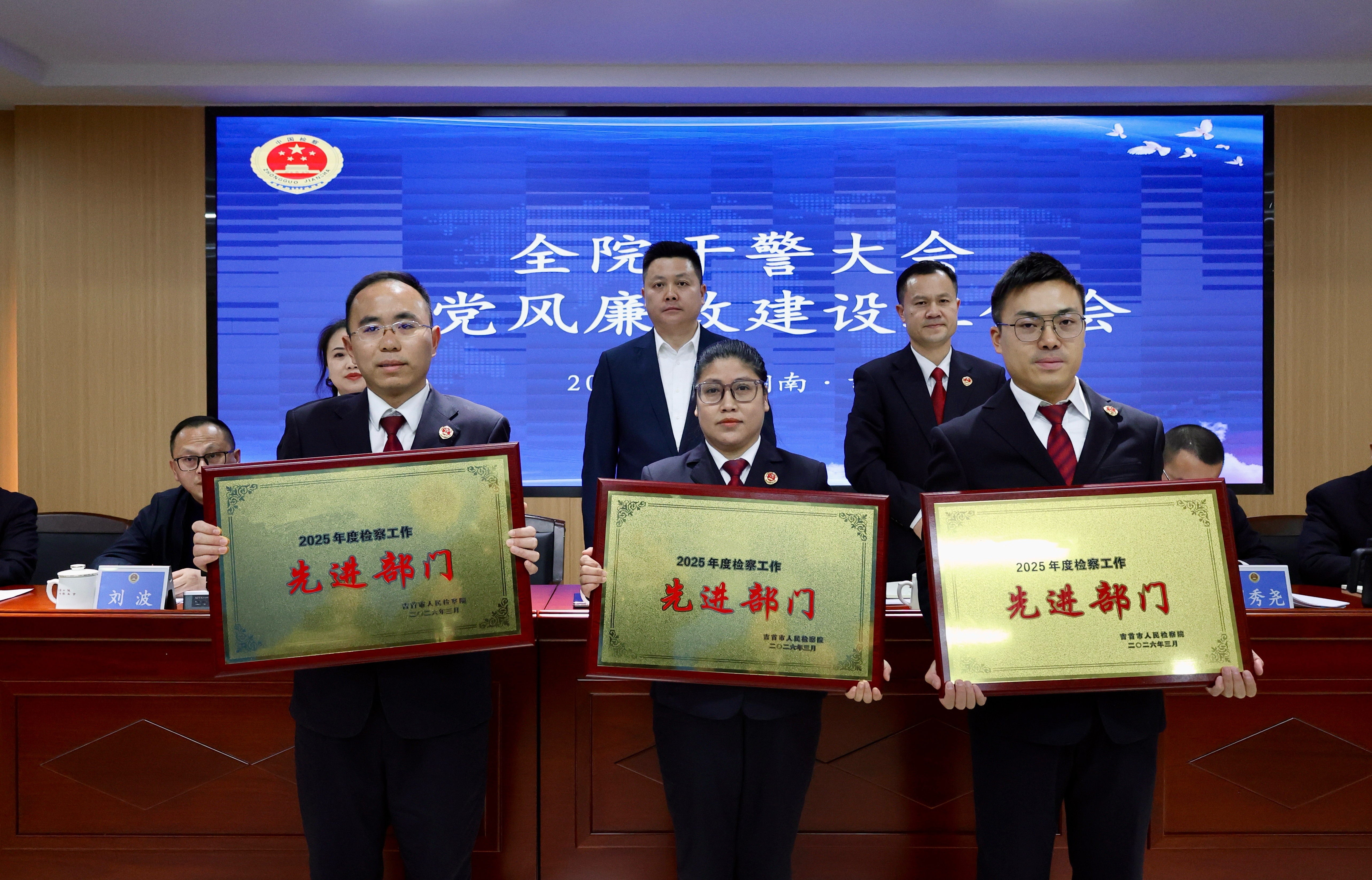 会议还宣读了该院获上级表彰情况,通报了2025年全员考核结果,并为2025年度先进部门颁奖。市纪委监委派驻市委政法委纪检监察组组长刘波就检察机关党风廉政建设工作提出了具体要求。