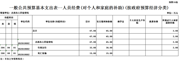 10、一般公共预算基本支出表-人员经费(对个人和家庭的补助)(按政府预算经济分类)