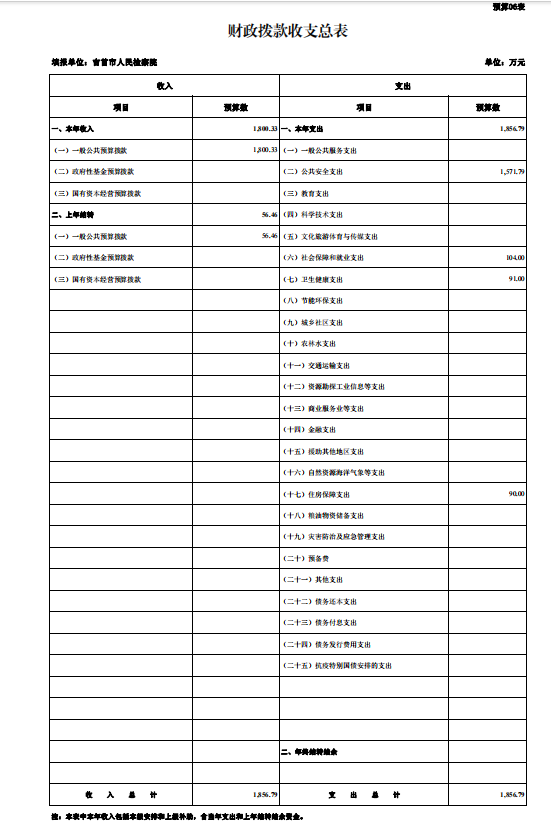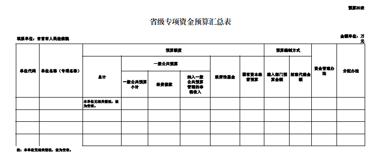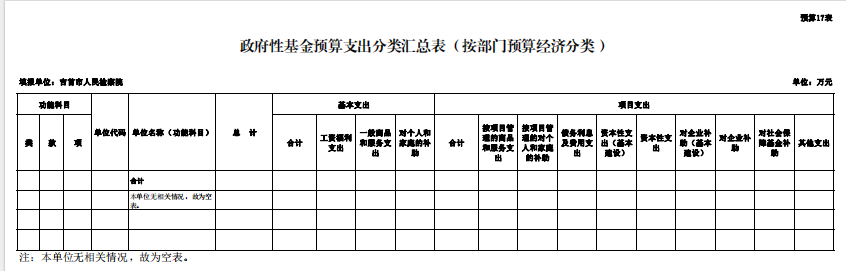 注:以上部门预算报表中,如本部门无相关收支情况,也需公开空表。
