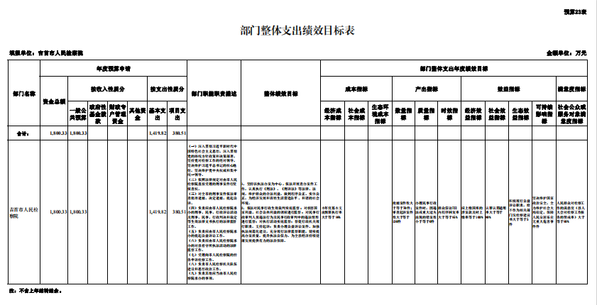 (六)预算绩效目标说明:本单位所有支出实行绩效目标管理。纳入2024年单位整体支出绩效目标的金额1800.33万元,其中,基本支出1419.82万元,项目支出380.51万元,具体绩效目标详见报表。